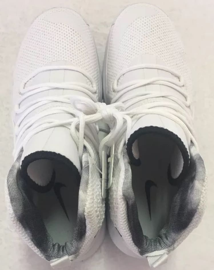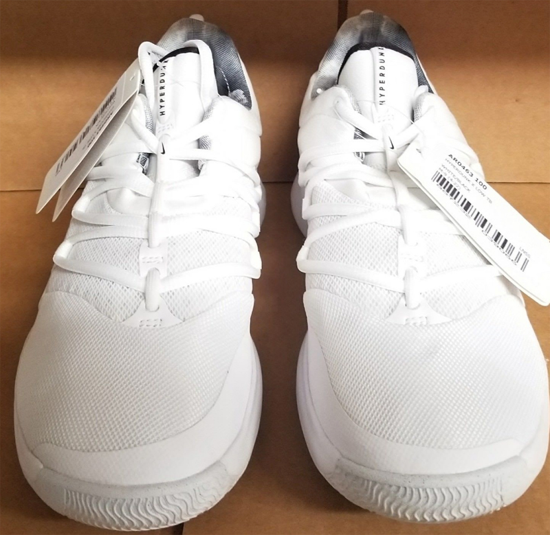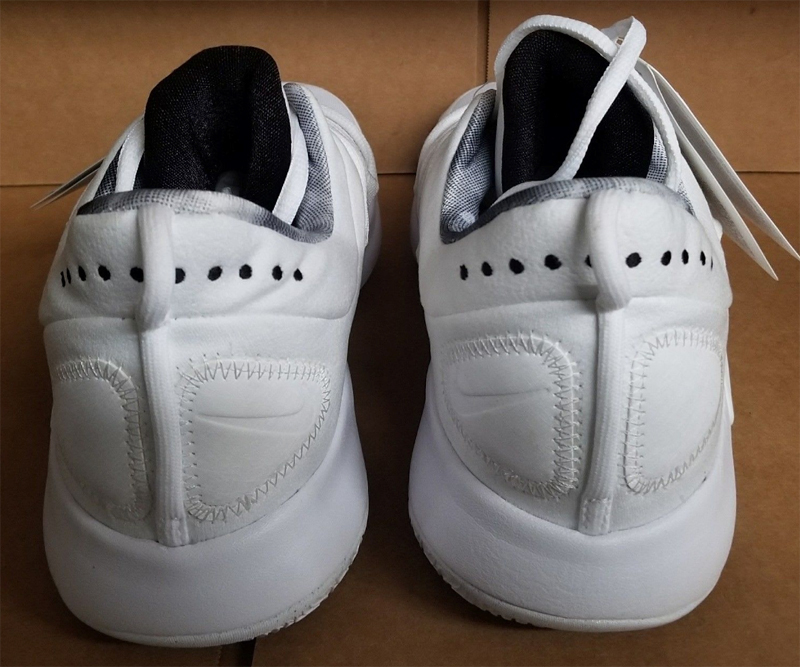 Pour le design, retour à un peu plus d’audace, avec des lacets qui couvrent une bonne partie du pied. La plaque sur l’extérieur rappelle un peu la Hyperdunk 2011. La tige semble être composée de mesh. Les photos volées sont celles d’un échantillon. Des changements sont donc encore possibles d’ici à la commercialisation.