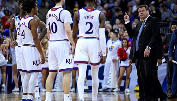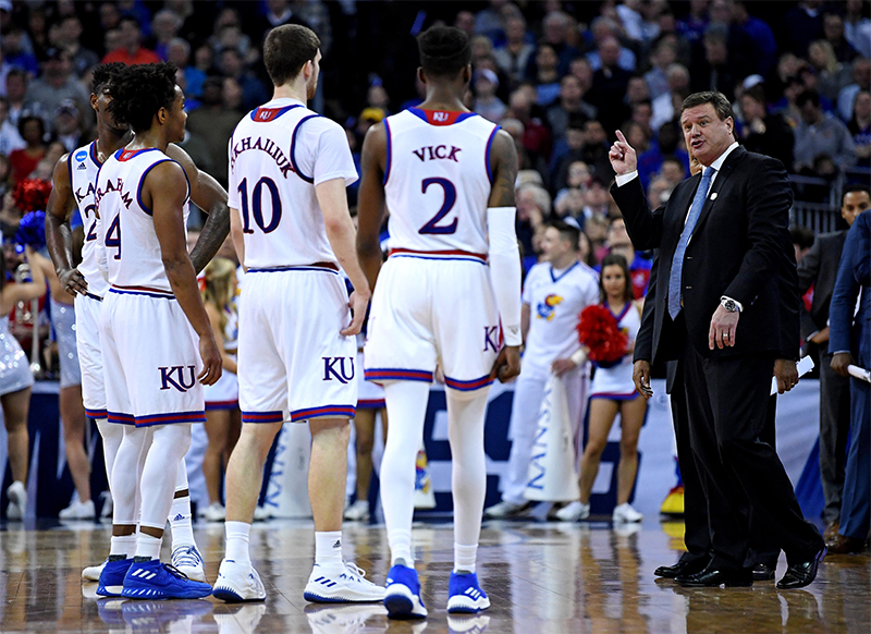 En sortie de temps mort, Bill Self a ainsi sorti de son chapeau un très joli système. La première phase revient à fixer la défense de Duke côté gauche, avant de rebasculer rapidement la balle côté droit pour que Devonte Graham puisse servir Silvio Da Sousa dans le mouvement. Et c’est l’arrière Marcus Garrett qui lui offre un layup avec un écran sur Marvin Bagley.