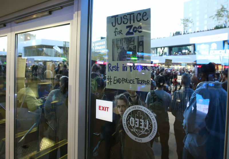 At Kings game. Building locked again. Protesters outside. pic.twitter.com/woErz4k7Im