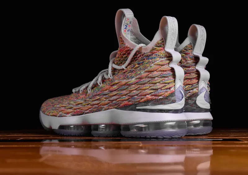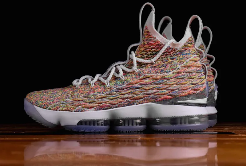 Les Fruity Pebbles, ce sont des céréales colorées au riz soufflé, parfumées au fruit. Beaucoup de jeunes Américains en raffolent. Du côté de chez Nike, on en a fait un coloris pour la LeBron 15.