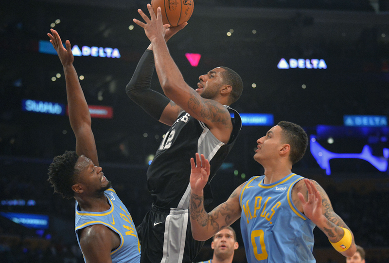 Hier soir, les Lakers ont d’ailleurs démontré à la fois l’utilité et les difficultés de la prise à deux poste bas, dont le but est d’obliger le joueur, et dans ce cas LaMarcus Aldridge, à lâcher le ballon. En première mi-temps, on a ainsi vu la troupe de Luke Walton être totalement chamboulée après un changement défensif sur le joueur de San Antonio.