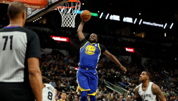 San Antonio insiste en commençant la période par un autre 4-0, les ramenant sous la barre des dix points, mais les deux actions suivantes ruinent leurs efforts. C’est d’abord un tir primé de Klay Thompson après deux rebonds offensifs qui vient les assommer, suivi d’un lay-up en transition du Splash Brother.