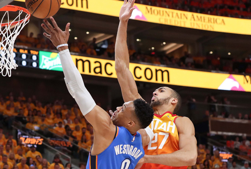 Même lorsque Rudy Gobert est trop loin, Russell Westbrook y réfléchit ainsi à deux fois avant de shooter.