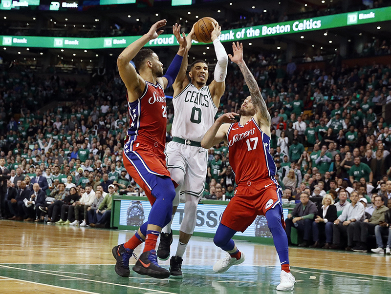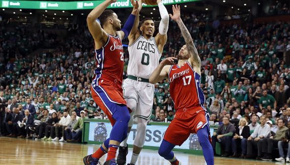 Et c’est finalement de ça dont va profiter Jayson Tatum, qui coupe dans le dos de son adversaire, qui a les yeux rivés sur le ballon. De quoi permettre à Marcus Smart de servir son rookie sous le cercle, malgré l’aide de TJ McConnell.