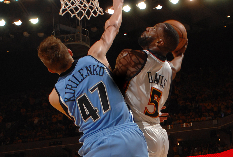 Mais pour le premier match dans la Baie, les Warriors vont l’emporter. Baron Davis a mal partout mais il récupère le ballon des mains d’Andris Biedrins, dépasse Deron Williams et attaque le cercle, alors qu’Andreï Kirilenko vient en aide. Le meneur met son bras en opposition et écrase le Russe, alors que l’Oracle Arena rentre en ébullition…