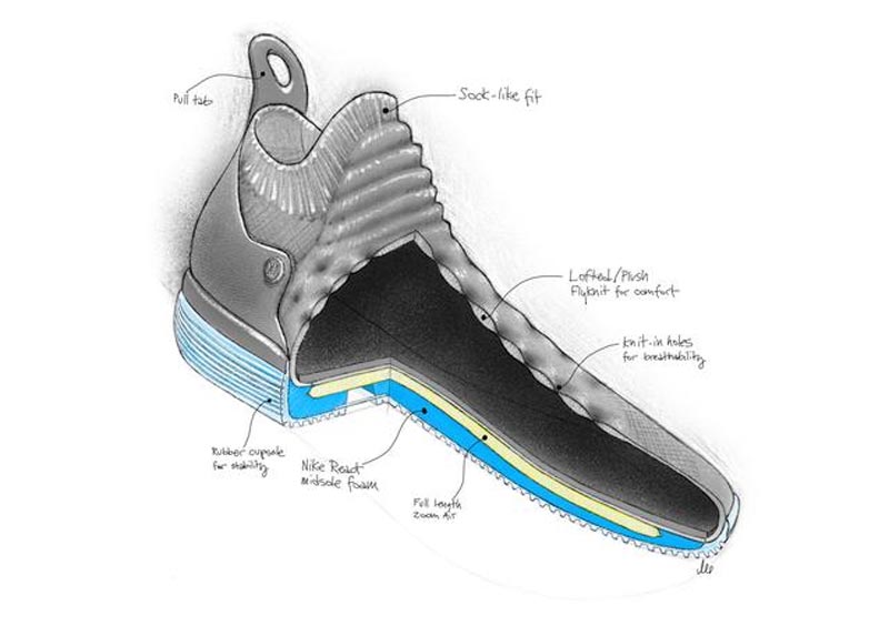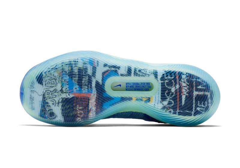 Contrairement à l’an dernier, l’évolution est clairement visible, que ce soit sur la forme ou les technologies. Avec sa tige en Flyknit, la nouvelle KD va toujours plus loin dans le look chaussette, avec seulement un renfort au talon et un autre sur l’extérieur du pied.