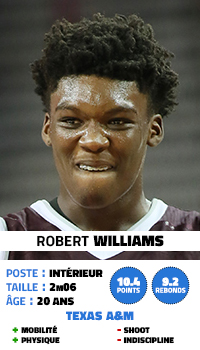 Même s’il n’est pas très grand, la mobilité et les qualités athlétiques de Robert Williams font de lui un prospect très apprécié. Ils sont ainsi nombreux à le voir dans un rôle à la Clint Capela, celle d’un pivot capable de protéger le cercle et de prendre le rebond, même face à des équipes jouant petit.