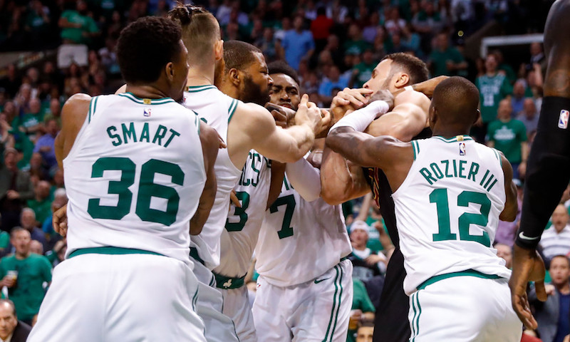 Le Cavalier se relève furax et s’en va pousser Morris dans le dos, d’un coup de coude. Ce dernier tente alors de répliquer, en vain. S’en suit le grand classique du bazar général durant lequel les quatre autres Celtics se retrouvent à proximité de Nance tandis que les joueurs de Cleveland sont beaucoup moins réactifs pour intervenir. Bilan de l’opération : une faute technique pour les deux protagonistes ainsi qu’une autre pour Terry Rozier, venu défendre son équipier en poussant Nance.