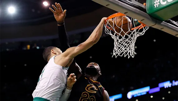 Ils ne sont pas nombreux à pouvoir dire qu'ils ont postérizé LeBron James. À tout juste 20 ans, Jayson Tatum peut s'afficher fièrement dans cette petite liste, grâce à un énorme dunk réalisé lors du Game 7 de la finale de conférence Est.