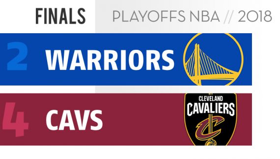 Pour la quatrième saison consécutive, les Warriors et les Cavaliers se retrouvent en finale NBA, une première dans l’histoire de la ligue mais également dans l’histoire des trois autres sports majeurs aux Etats-Unis. Si Stephen Curry, Kevin Durant, Draymond Green et Klay Thompson sont toujours là pour protéger le titre acquis la saison dernière, LeBron James arrive lui avec un effectif complètement chamboulé et comparable à celui du premier chapitre entre ces deux équipes, en 2015.
