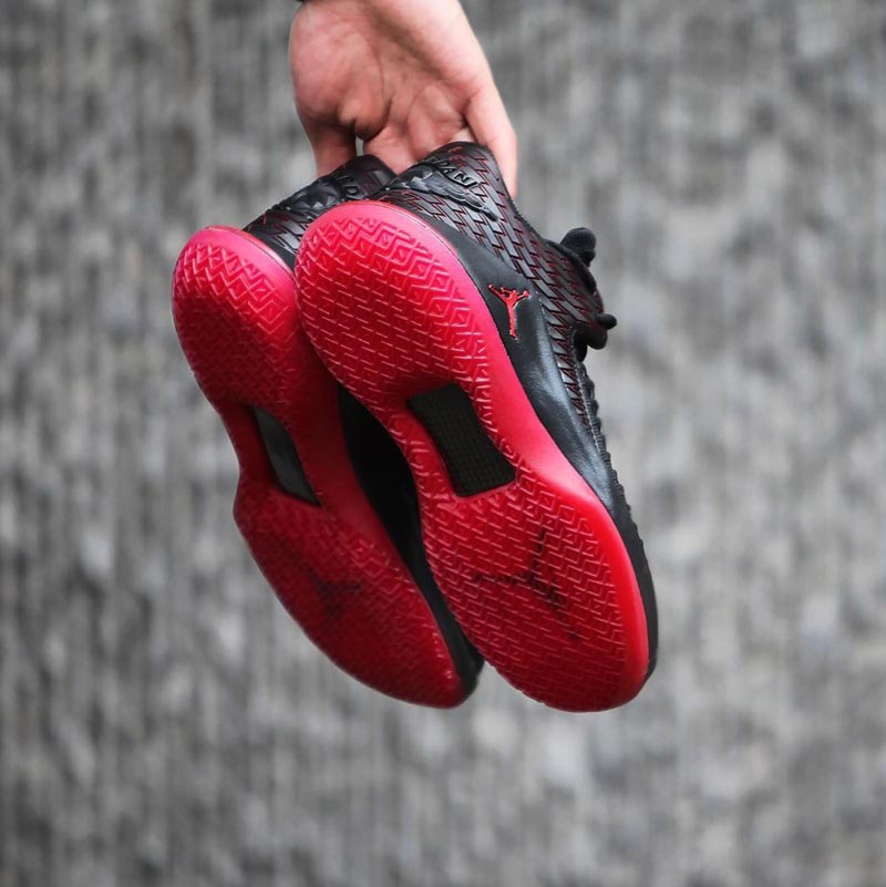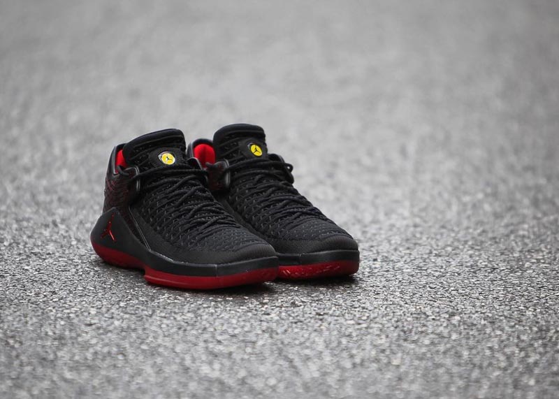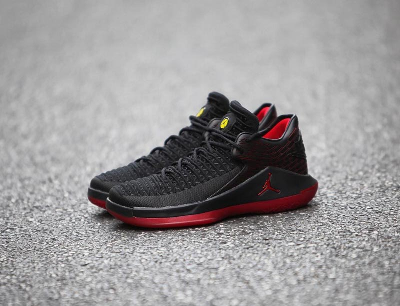 Mais quelques jours avant, le 9, Jordan Brand va appliquer le même coloris sur sa petite dernière, la Air Jordan 32 Low. La marque a poussé le mimétisme jusqu’à placer son Jumpman dans un fond jaune pour reprendre le clin d’oeil original à Ferrari.