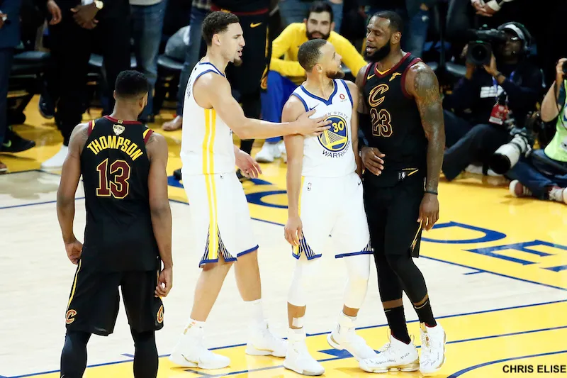 Nous avons toujours eu droit à des retournements de situations les plus fous les uns que les autres. La blessure de Kyrie Irving en 2015 et la suspension de Draymond Green en 2016 ont laissé place à l'imbroglio autour du passage en force sifflé puis annulé contre Kevin Durant, le lancer-franc manqué de George Hill et à l'incroyable boulette de J.R. Smith dans les dernières secondes du temps réglementaire. Le tout ponctué d'un accrochage entre Tristan Thompson et Green.