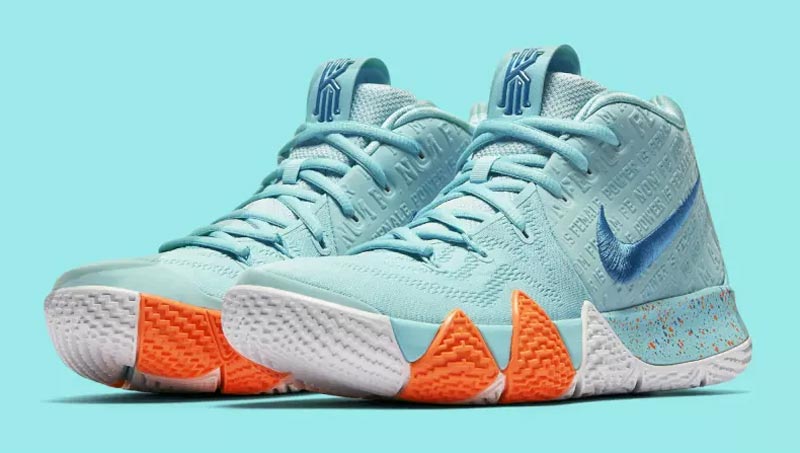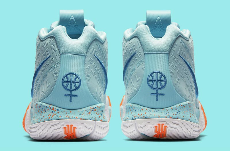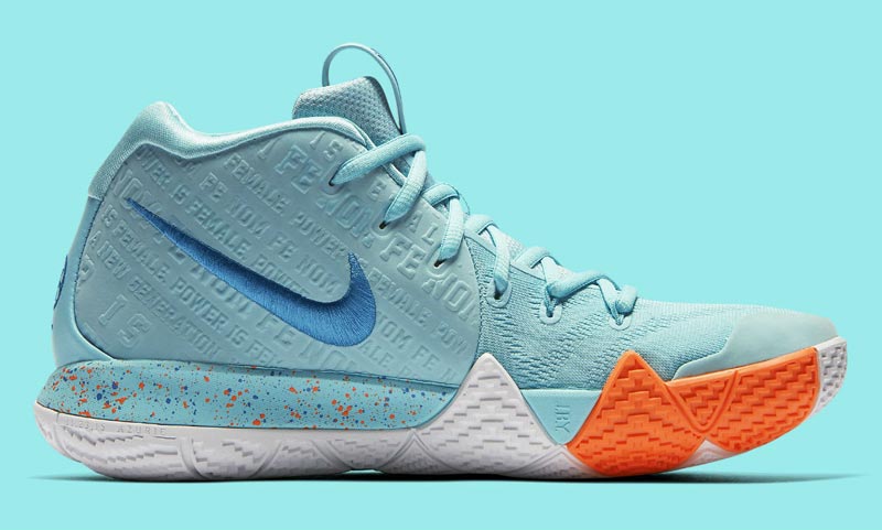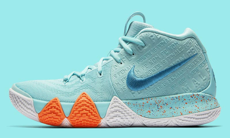 Les femmes seront à l’honneur le 15 juin avec la Kyrie 4. Nike a imaginé un coloris à base de turquoise baptisé “Power is female”. Le pouvoir aux femmes, donc. La chaussure est barrée par cette inscription. On retrouve aussi “We are a new generation” (Nous sommes une nouvelle génération).