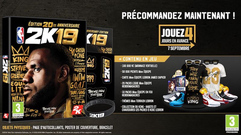 En plus de contenus et thèmes consacrés à LeBron James, les fans qui achèteront l’Edition 20e Anniversaire de NBA 2K19 auront accès au jeu quatre jours à l’avance, à partir du 7 Septembre.