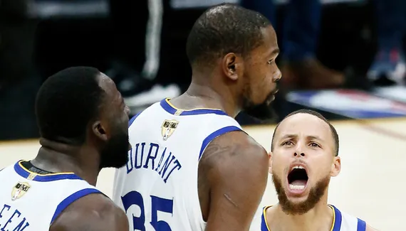 Après un dunk d'Iguodala et un nouveau stop défensif, KD remonte le terrain, patiente, demande un écran, et alors que J.R. Smith switch, décoche le même tir que l'année dernière, cette fois à dix mètres, pour briser le coeur de la Q Arena et les espoirs des Cavs (106-100). Les Warriors ne sont plus qu'à une victoire du doublé et d'un troisième titre en quatre ans.
