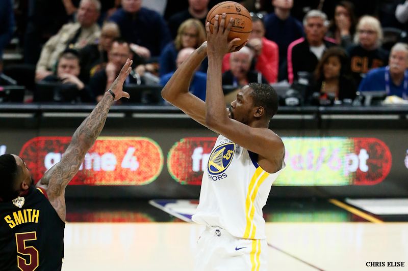 Mais rien ne peut empêcher Kevin Durant de briller. L’ailier des Warriors a été incroyable d’efficacité et de maîtrise et il conclut son bijou avec un shoot à 3-pts sur la tête de JR Smith.
