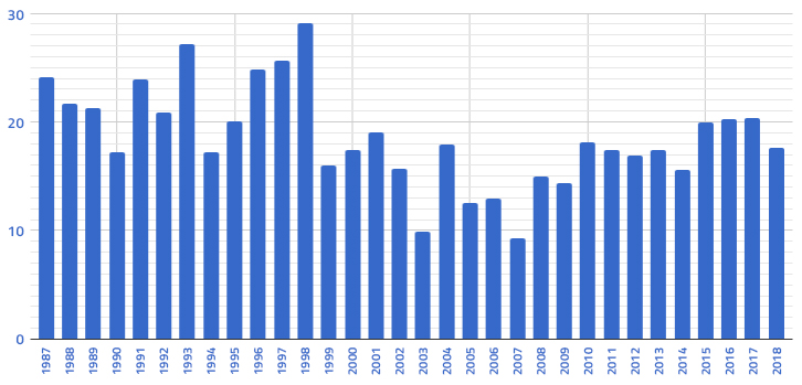 Les audiences définitives des Finals 2018 illustrent ainsi ce manque de suspense puisque pour la première fois depuis que les deux équipes se retrouvent lors de l’ultime série, soit donc quatre ans, elles sont en baisse. En moyenne, les quatre matchs de cette année n’ont ainsi attiré “que” 17.65 millions de téléspectateurs américains devant leur télévision, contre 19.9 millions en 2015, 20.2 millions en 2016 et 20.4 millions l’an passé.