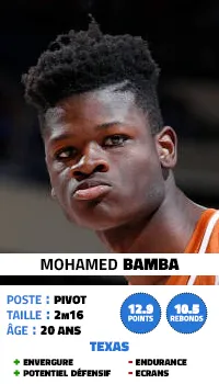 Avec sa taille et son envergure, Mo Bamba est souvent comparé à Rudy Gobert, avec peut-être le shoot en plus. Après l'échec de la greffe Nerlens Noel, le natif de Harlem pourrait bien devenir le point de fixation intérieur que cherche la franchise depuis désormais quelques saisons. Un joueur capable de couvrir les arrières de Dennis Smith Jr et de combiner avec lui sur le pick-and-roll. Le potentiel est en tout cas très intéressant.