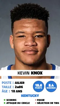 À New York, la blessure de Kristaps Porzingis ne fixe pas d'objectif à court terme et on pourrait peut-être miser sur un prospect talentueux mais qui a besoin de temps pour se développer. Avec ses qualités physiques, sa polyvalence (tant en défense qu'en attaque) et sa capacité à jouer sans le ballon, Kevin Knox a des arguments à faire valoir dans sa complémentarité avec le Letton.
