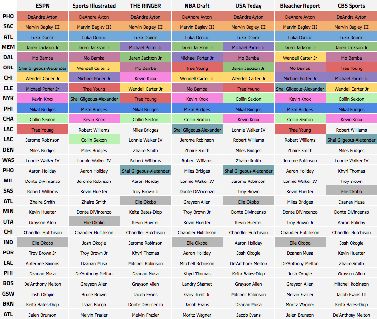 Premier constat : le trio de tête, DeAndre Ayton – Marvin Bagley III – Luka Doncic, semble faire l’unanimité.