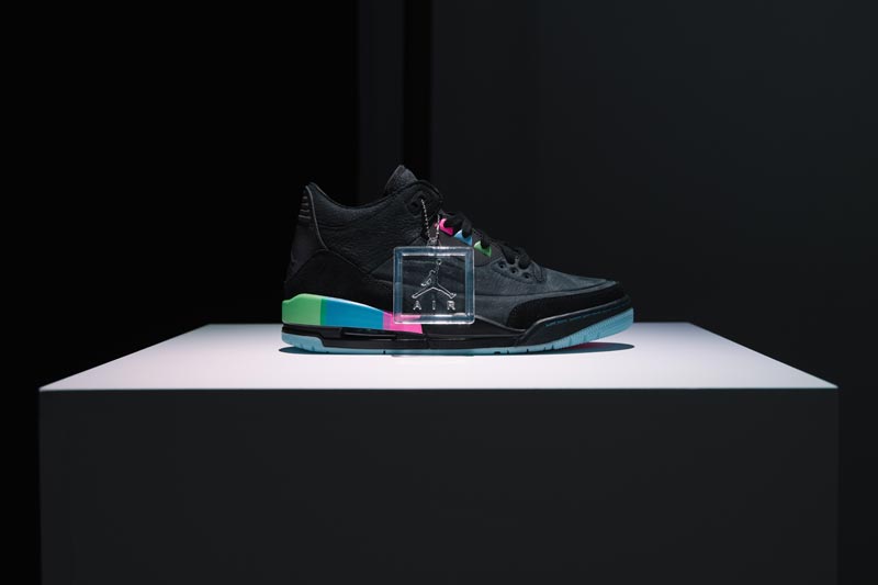 Comme tous les ans, le tournoi parisien est gâté, avec une paire de Air Jordan 3 spécialement imaginée pour lui. Le coloris est noir, avec trois petites touches de couleur. Il sera disponible le 7 juillet, pour 190 euros.