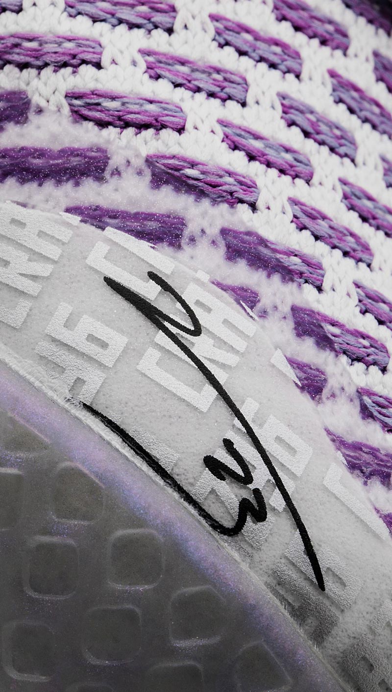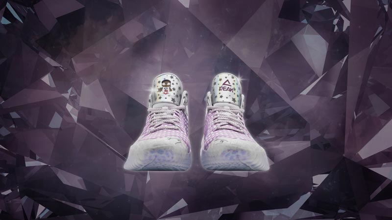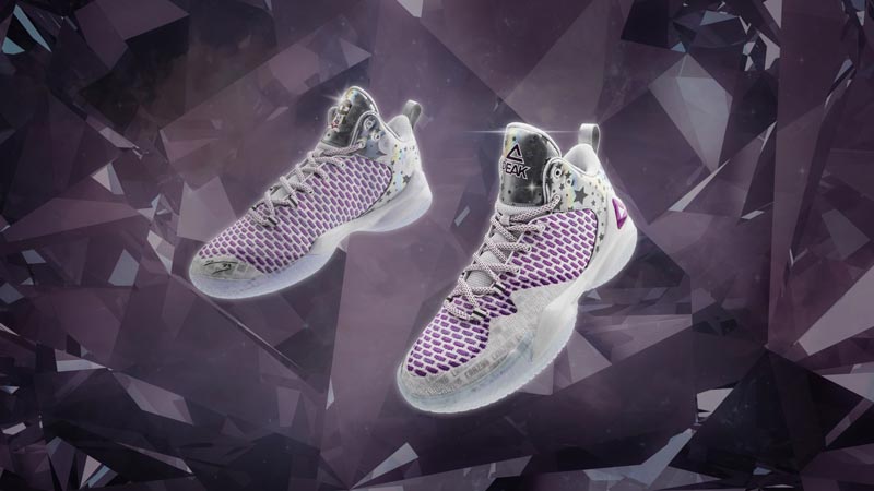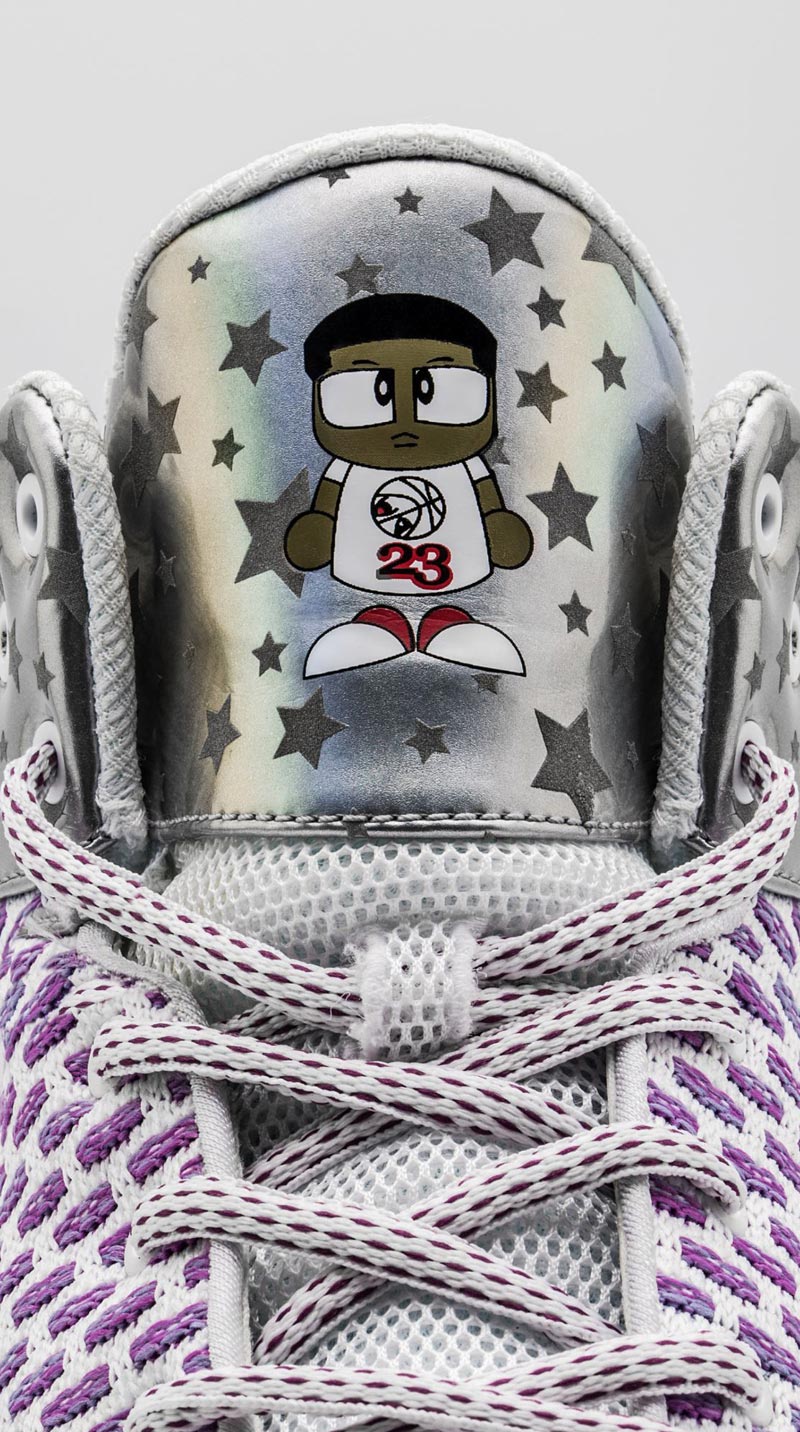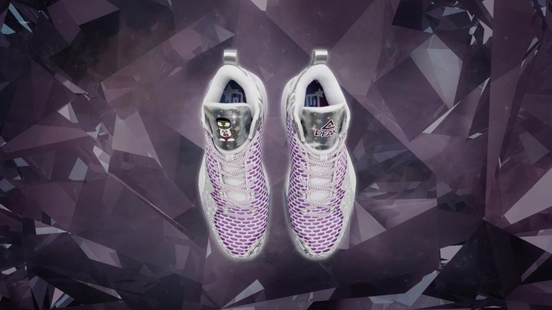 On y retrouve une Peak Streetball Master habillée d’argent et de violet, avec des étoiles, les initiales de Williams et même un dessin de lui en version cartoon.
