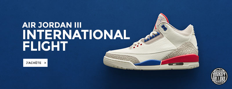 Commandez chez B4B la Air Jordan 3 International Flight inspirée d’un match de charité s’étant déroulé durant l’été 88 au cours duquel MJ scora 54 points en arborant ces mêmes couleurs.