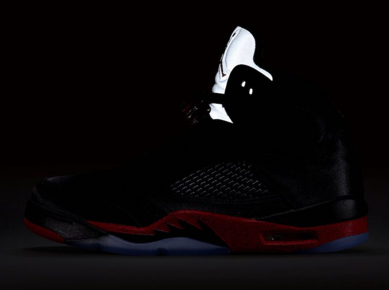La Air Jordan 1 y avait déjà eu le droit, et cette fois-ci c’est la Air Jordan 5 qui se pare de satin dans une série de visuels communiqués par Nike.