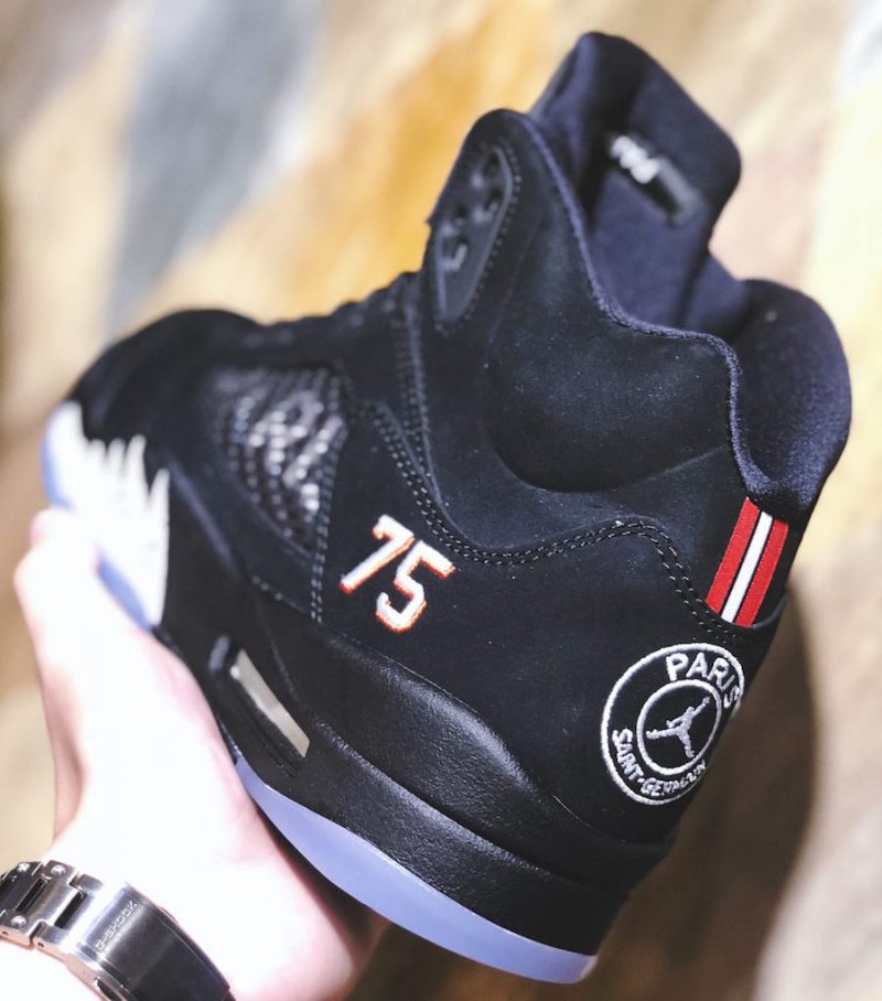 Jordan Brand a décidé de mettre le PSG à l’honneur, avec pour l’instant deux Air Jordan 1 différentes et une Air Jordan 5 au programme. Cette dernière se dévoile un peu plus grâce au compte Instagram @ylt_r3.