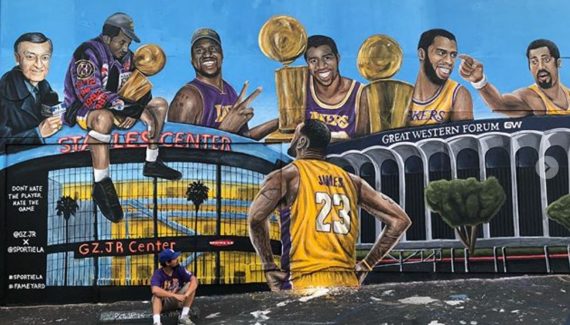 Une traînée blanche a été peinte dans le dos du joueur. Une attitude qui a de quoi surprendre l’artiste et fan des Lakers, Gustavo Zermeno, auteur de la fresque sur laquelle il a travaillé cinq jours.