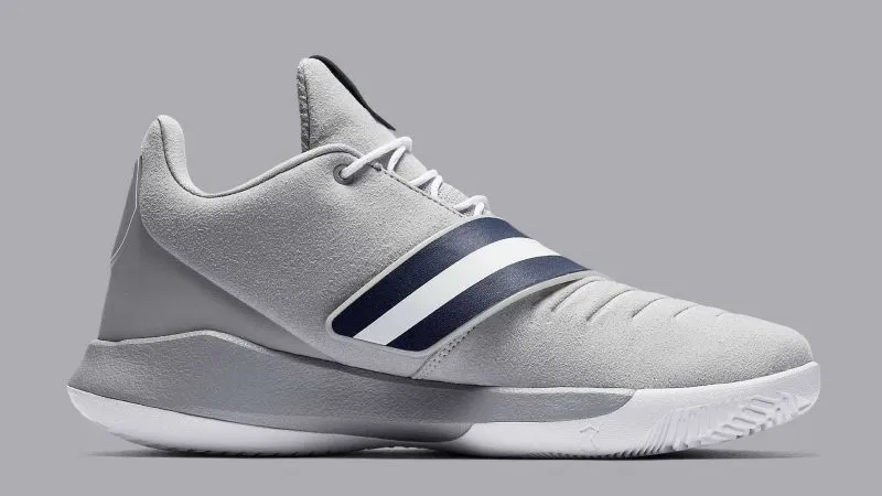 Ce qui nous donne donc un modèle couvert de suede gris, avec un strap bleu marine et blanc, et un petit détail sympathique : la semelle à l’intérieur de la chaussure a un imprimé gazon.