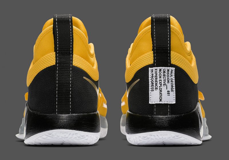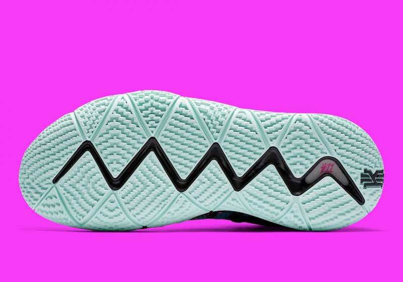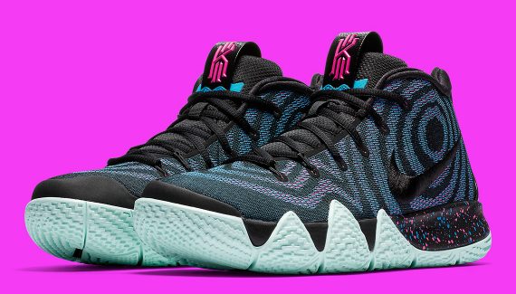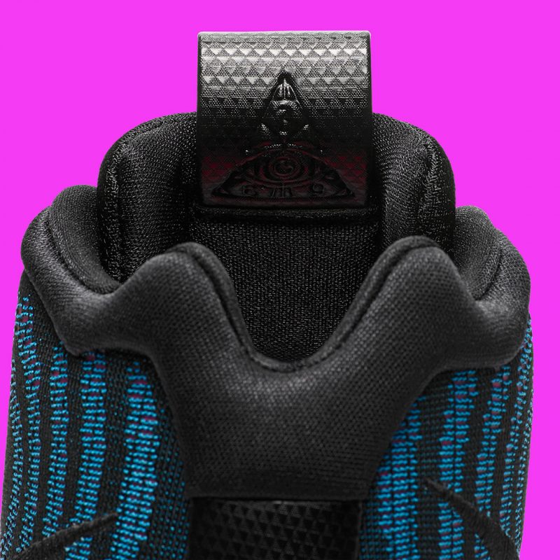 La première paire est jaune et noire façon Kill Bill – comme la Kyrie Low qui sortira le 18 août – et vous promet d’aller explorer la lune avec Paul George : c’est inscrit sur deux étiquettes collées aux deux chaussures. Pour la Kyrie 4 baptisée “Laser Fuchsia”, le meneur de jeu appose lui sa patte sur l’intérieur de la languette, avec cet “oeil omniscient” qui lui est cher, sur un modèle noir, bleu et rose.