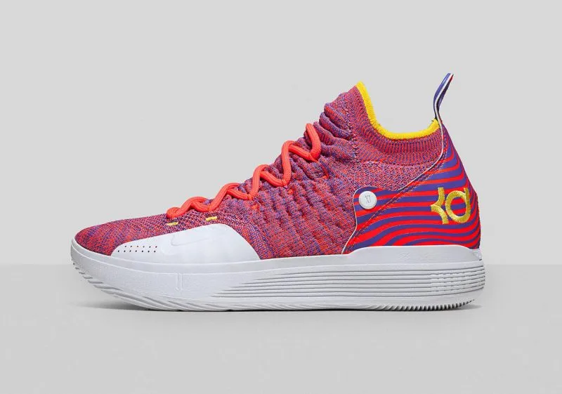 LeBron 15, Kobe AD, Kyrie 4, LeBron Soldier 12, PG 2, KD 11 : toutes ces paires récupèrent des touches de mauve, de jaune ou de orange, en l'honneur des “Twin Cities” Saint Paul et Minneapolis, de leurs Vikings et de Prince bien sûr.