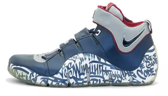 Car on retrouve quelques pépites dans le lot. Exemples : une LeBron 4 portée lors du All-Star Game 2007 (30 000$), la LeBron 13 Elite du Game 4 des Finals 2016 (35 000$) ou une Soldier 10 utilisée lors du Game 5 de ces mêmes Finals 2016 (35 000$). La collab' LeBron 15 x Kith de Noël 2017 est aussi là, pour 25 000 billets verts.