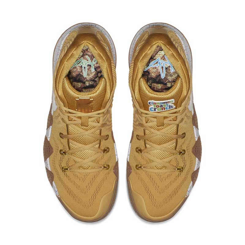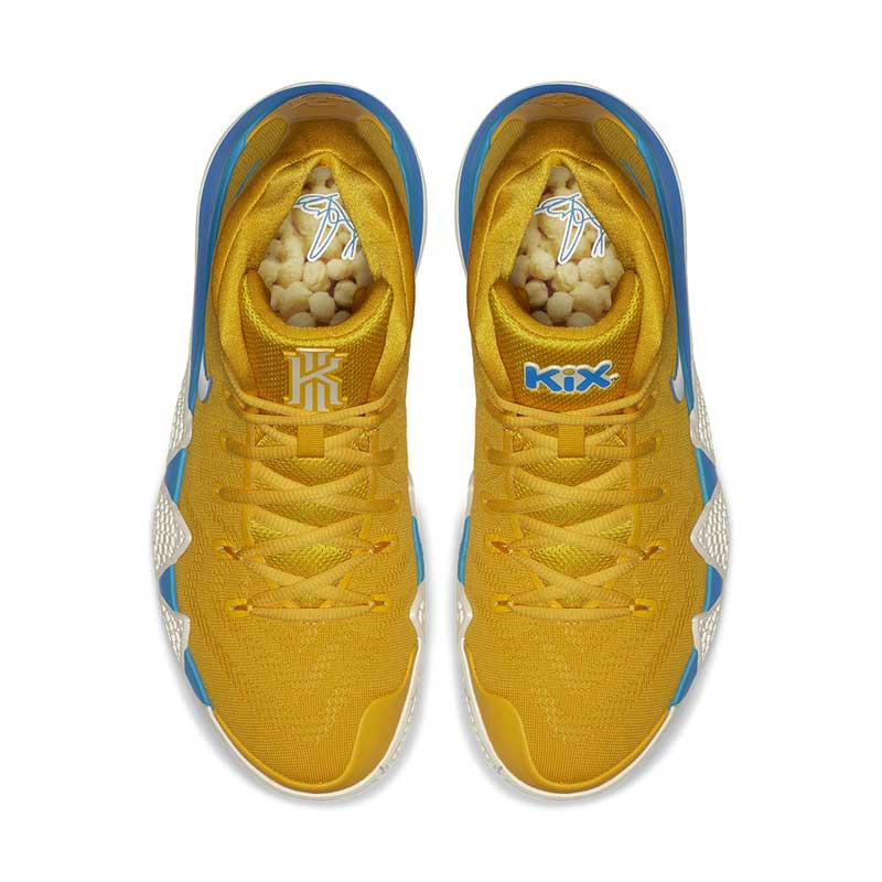 Le 11 août, la Kyrie 4 va rendre hommage à ces trois céréales avec un “Cereal Pack” très coloré. Chaque chaussure ressemble à une boite de céréales, avec le nom sur la languette du pied gauche. À chaque fois, c’est flashy. Le détail plutôt sympathique qui fait la différence, c’est la semelle interne, qui donne l’impression de plonger le nez dans un paquet fraîchement ouvert et remplis à raz-bord.