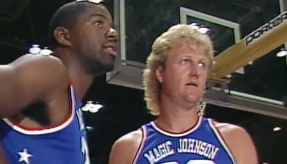 Avant le match, Dominique Wilkins et Spud Webb s'offrent un remake du Slam Dunk Contest 86′, puis place au plat principal avec Magic Johnson et Larry Bird pour une fois coéquipiers. Des images inédites retrouvées par ESPN.