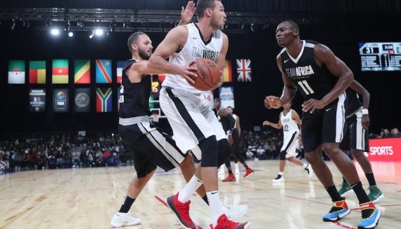 Sous les yeux de Kareem Abdul-Jabbar, Dikembe Mutombo mais aussi Carmelo Anthony, et sous l’impulsion du MVP de la rencontre, Danilo Gallinari (23 pts à 9 sur 10 aux tirs, 8 rbds), la Team World s’est imposé 96-92 en fin d’après-midi face à la Team Africa.