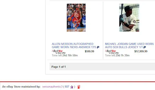 Sur cette page, on peut ainsi s'offrir un authentique maillot porté par Michael Jordan lors de sa période baseball. Le prix : 18 000 dollars !