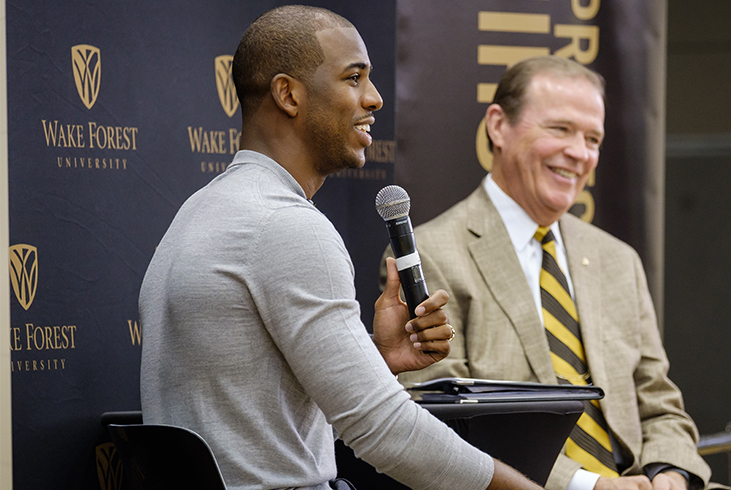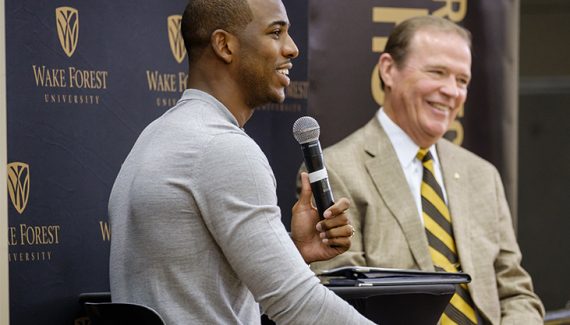 S’ils restent quelques années à Wake Forest, les Français Jaylen Hoard et Olivier Sarr auront peut-être l’occasion de se préparer dans le Chris Paul Locker Room. C’est le nom que porteront les futurs vestiaires hommes et femmes de cette université de Caroline du Nord, et les travaux seront financés grâce à un don de 2.5 millions de dollars du meneur des Rockets, sorti de Wake Forest en 2005.