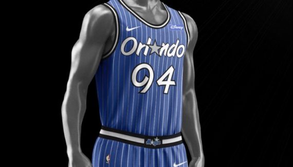 Un maillot qui renvoie à l’une des périodes les plus excitantes d’Orlando, lorsque Penny Hardaway et Shaquille O’Neal faisaient le bonheur des fans de basket du monde entier. Le design est similaire au maillot extérieur porté entre 1994 et 1998 avec de fines bandes verticales sur fond de bleu foncé. La typographie des numéros est quant à elle inédite.