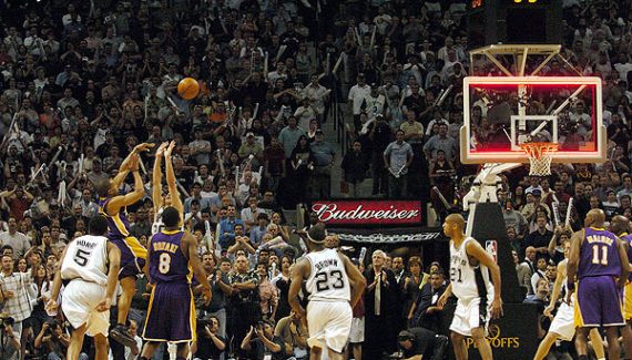 À 2-2 dans la série, Tim Duncan croyait pourtant avoir donné la victoire aux siens d’un tir en reculant après un dribble sur sa gauche non moins improbable, le tout face à Shaquille O’Neal. Mais il n’a donc suffi que de quatre dixièmes de secondes à Derek Fisher pour réceptionner la passe de Gary Payton et envoyer ce shoot mythique.