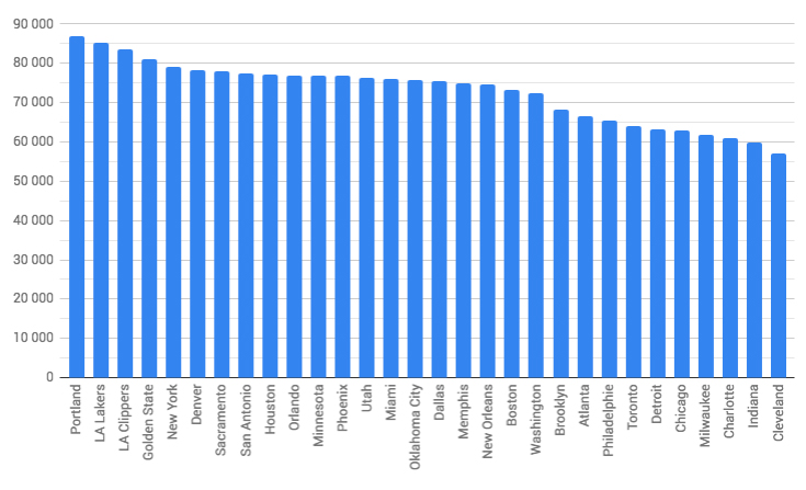 À l’inverse, ce sont par contre les Cavaliers qui se déplaceront le moins, avec 57 048 kilomètres à parcourir durant la saison. C’est quasiment 30 000 kilomètres de moins que les Blazers…