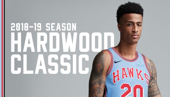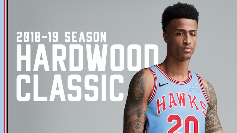 « Les Hawks porteront le premier maillot de leur histoire à Atlanta », explique un communiqué. « Il est bleu et rouge et a été porté par Lou Hudson pendant une saison, en 1968. »
