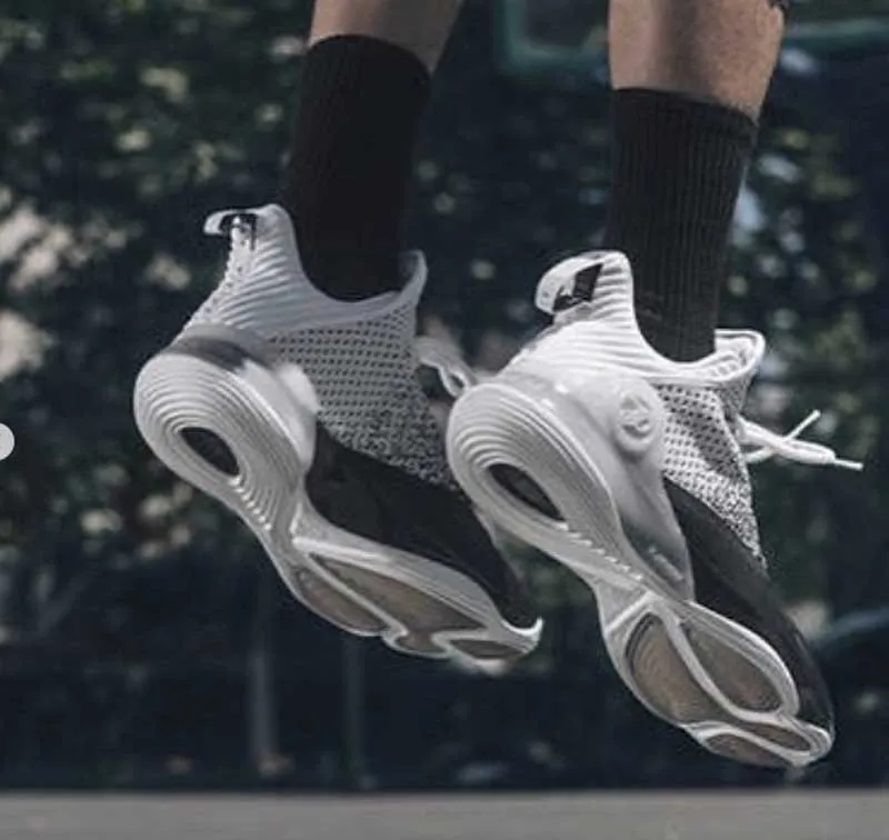 Cette silhouette marque une nouvelle évolution pour la ligne TP. Sur la tige, les matériaux se mélangent. Cuir synthétique à l'avant, textile à l'arrière. Le tout est posé sur une mousse d'amorti Gradient Dual. Le renfort “P-Boom” est encore là pour assurer la stabilité. Peak semble donc avoir travaillé dans la continuité de l'excellente TP5.