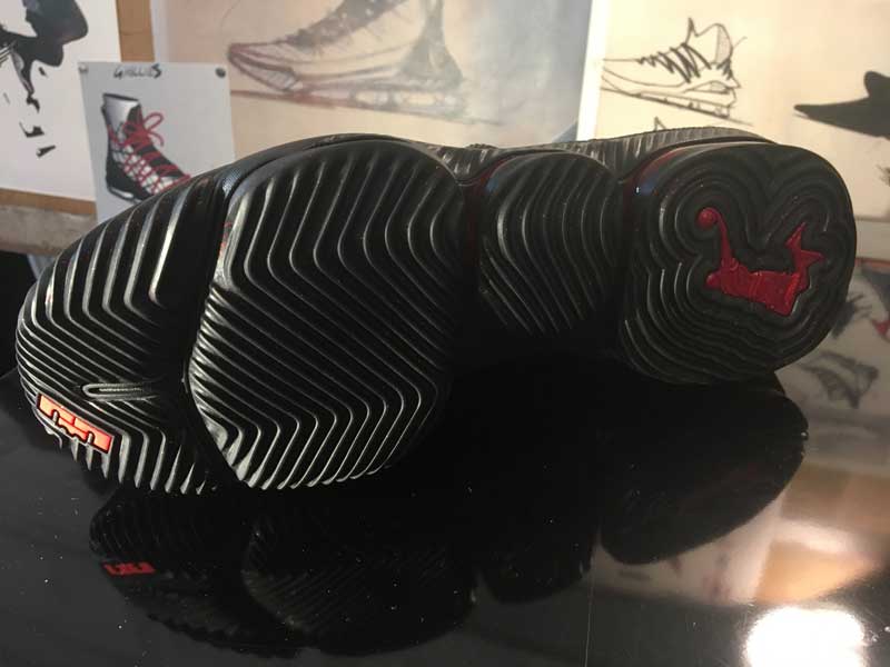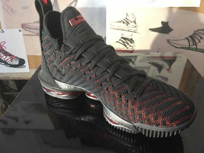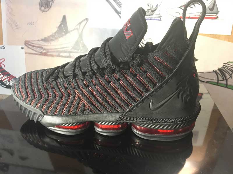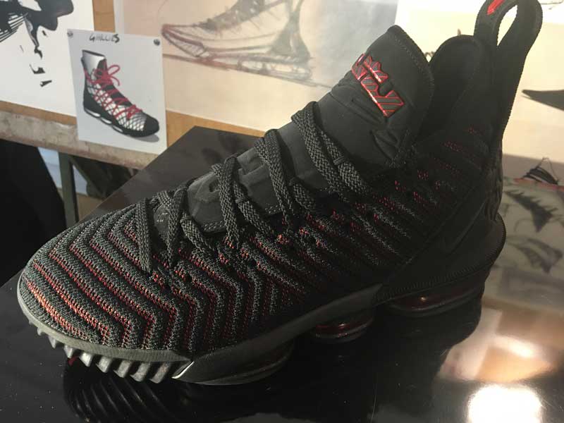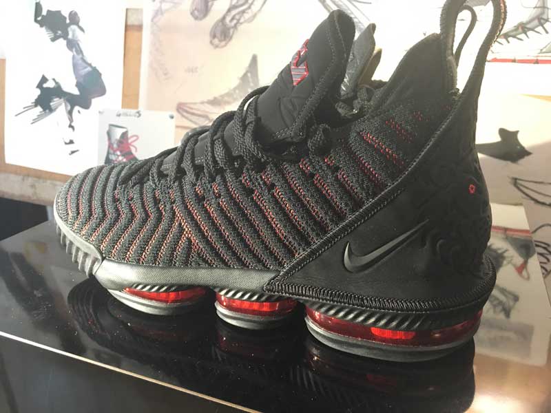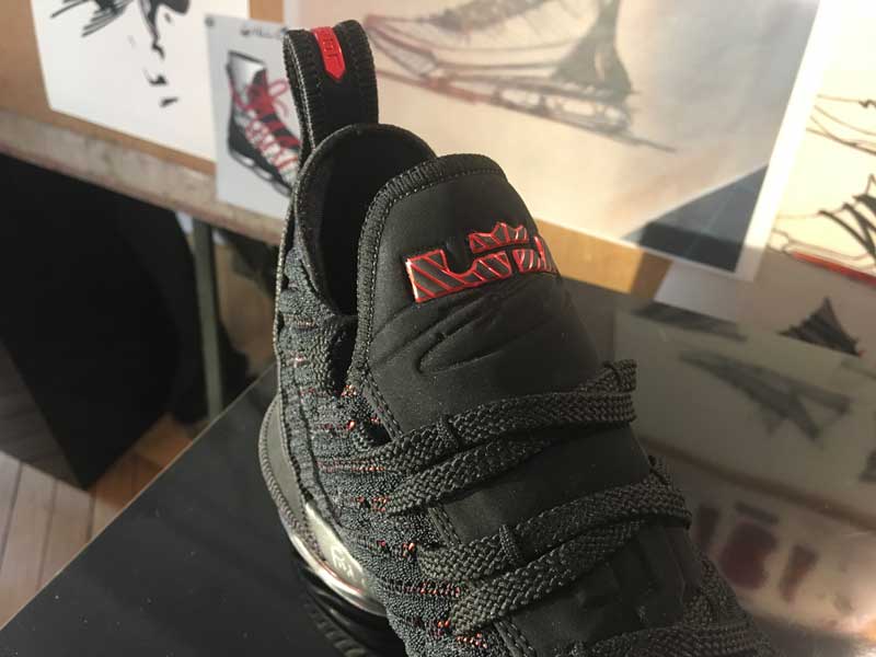 “Quand vous combinez la vitesse et la puissance qu’il génère… Quand vous êtes assis au bord du terrain, le parquet tremble quand il passe tout près. Donc vous voulez qu’il soit rapide, mais pour réduire le poids de la chaussure, il faut retirer des matériaux et réduire le maintien. Donc c’est un équilibre délicat”, nous a expliqué Jason Petrie, designer de la LeBron 16. “Il en faut juste assez pour avoir du maintien, mais sans être trop imposant. La 16 avait quelques éléments que nous avions mis pour la rendre plus robuste, mais il nous a dit de les retirer.” […] Certaines années, il voulait plus de maintien, ou une sangle. Mais cette année, il voulait plus bas, son corps est plus mince, et ça se reflète sur la chaussure.”