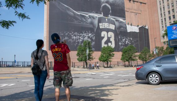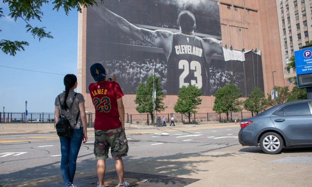 En effet, la légendaire bannière de LeBron James, accrochée sur le mur d’un immeuble de l’entreprise Sherwin-Williams dans le centre-ville, a été retirée début juillet. Elle faisait plus de 2000 m² et pesait plus d’une tonne !
