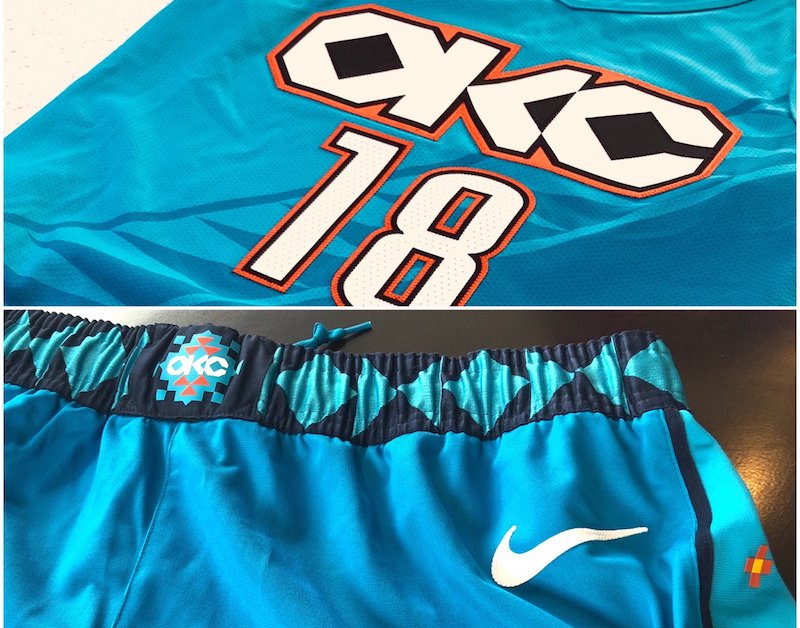 Look what came our way. It appears to be a photo of the Thunder's new "City Edition" uniform for this season, with a Native American influence. Very nice! pic.twitter.com/4iyUKnEalq