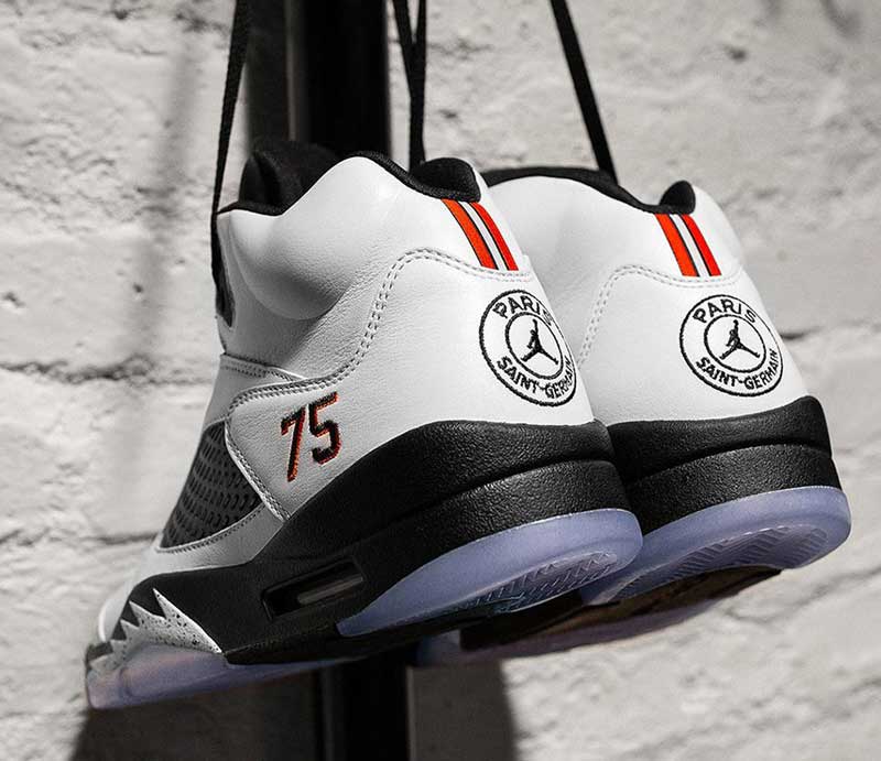 La collaboration entre Jordan Brand et le PSG a accouché de deux paires qui seront mises en vente ce vendredi : une Air Jordan 1 et une Air Jordan 5. À chaque fois, le coloris est noir.