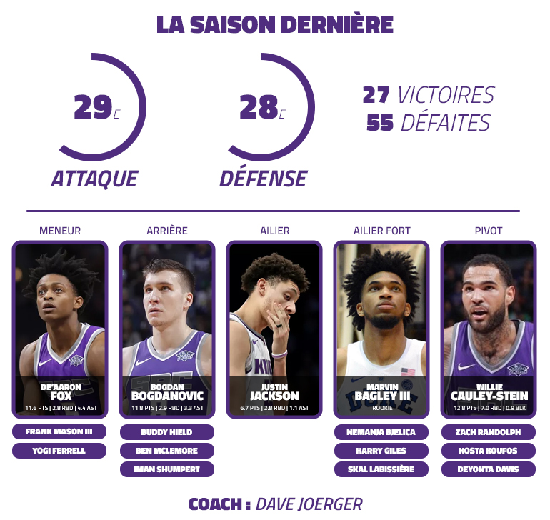 Comme chaque année, Basket USA propose une présentation de la saison NBA et des 30 franchises sous la forme d’un compte à rebours, de la 30e place à notre favori pour le titre de champion NBA. Après les Hawks, place aux Kings qui n’ont pas réussi à attirer un jeune free agent malgré des touches avec Zach LaVine, Aaron Gordon ou Jabari Parker. On prend donc les mêmes ou presque avec Marvin Bagley III comme chef de file. Réussira-t-il là où DeMarcus Cousins a échoué ?
