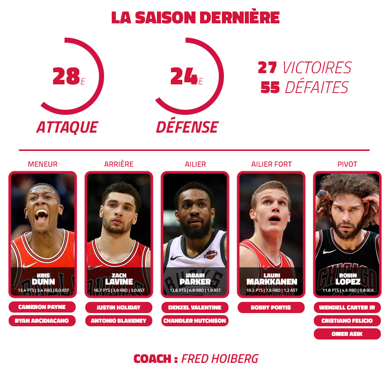 À la manière d’un Victor Oladipo à Indiana, Zach LaVine revient à la rentrée transformé et enfile le costume de All-Star en puissance, tandis que Jabari Parker retrouve son meilleur niveau et apporte une polyvalence bienvenue. Lauri Markkanen franchit lui aussi un nouveau cap, avec un Kris Dunn qui tient la boutique à la mène.